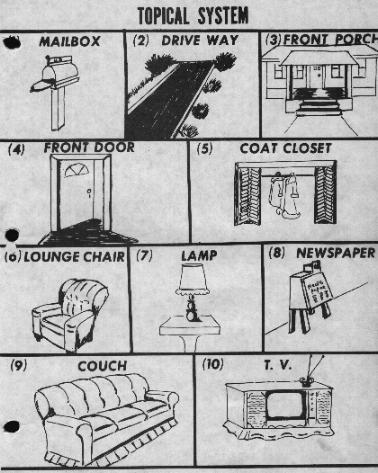 First of all you need a way to remember the pegs. We can do this by making a little story. Picture yourself comming home. You stop at the mailbox to see what mail you got today. Go up the driveway and park your car, get out and walk up to the front porch and walk through the front door. Hang your coat in the closet and have a seat in the lounge chair (to look at your mail or relax). Turn on the lamp and read the newspaper. When you get through reading you move to the couch to watch some T.V. After a while you go to the kitchen table and pull out a chair to sit on. Grab a pan out of the kitchen sink and get some food out of the refrigerator to heat something up on the stove. After you eat you go take a shower, get your toothpaste out of the medicine cabinet to brush your teeth. By now its getting late so you go to bed and read a chapter or two of a good book, set your alarm clock and go to sleep.